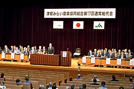 ■津軽みらい、剰余金は2・4億円 津軽みらい農協の第17回通常総代会が25日に行われ。令和7年度事業計画や第6次農業振興計画、第6次協同活動強化三カ年計画など提出された議案をすべて可決した。6年度事業報告によると、米穀は予約数量33万俵に対して26万の入庫実績があった。1等米比率は95・8%。販売は価格の高騰で計画対比128%の71億円。当期剰余金は2億4200万円を計上した。 |