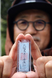 ■スキー神社修繕へ/お守り限定販売 大鰐町の大鰐スキー倶楽部は、大鰐温泉スキー場内にあるスキー神社のお守りを限定販売している。1体1000円。建立100周年に向け、昨冬の豪雪被害や経年劣化が目立つ神社の修繕に活用する。90年の節目を迎え、経年劣化が目立ってきたほか、昨冬の豪雪の影響もあり、猪股宮司が「役立ててほしい」と製作。クラブに寄贈した。 |