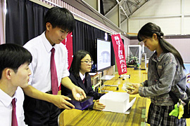 ■浪高祭に統合先の青森西も参加 青森市の県立浪岡高校で18、19日、浪高祭が開かれた。19日の一般公開は模擬店や作品展示のほか、令和9年度に統合する青森西高校との交流事業があり、同校の紹介動画上映と「西高どら焼き」の販売で親睦を深めた。浪高生徒会副会長は「空き缶壁画など浪岡の伝統を引き継ぎつつ、両校の垣根を越えてみんな仲良くなってほしい」と期待した。 |